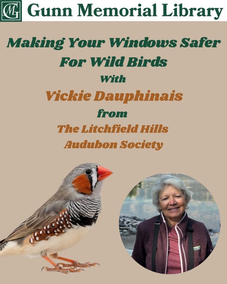 The Gunn Memorial Library is pleased to welcome Vickie Dauphinais of the Litchfield Hills Audubon Society, who will share insights into the vital role birds play in our backyards, the benefits they bring to our ecosystems, and the challenges they face today.