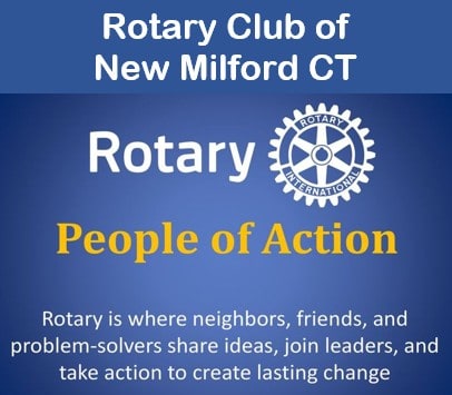 The Rotary Club of New Milford meets on Tuesdays, from 12:15 pm -1:30 pm, at Italia Mia Restaurant, 223 Route 7, New Milford CT. All are welcome.