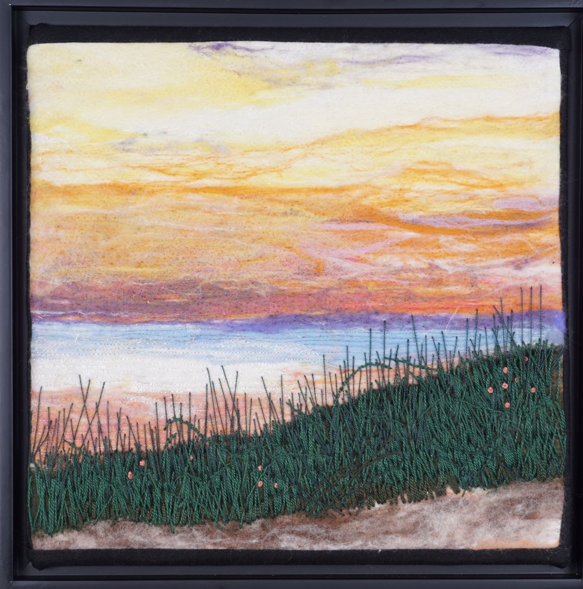 Learn to use the softest of materials, wool roving, and with a special barbed needle, create a landscape image on a background of raw silk. Award-winning fiber artist, Diane Cadrain, will demonstrate how the natural world can inspire your work by offering constantly refreshed images of arresting loveliness.