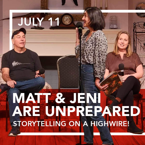 Matthew Dicks (a record 61-time Moth StorySLAM champion) and Jeni Bonaldo (Moth StorySLAM winner) take prompts straight from the audience and spin them into brand-new, completely improvised stories in real time. No scripts. No safety net. Just two professionals who should absolutely know better.
