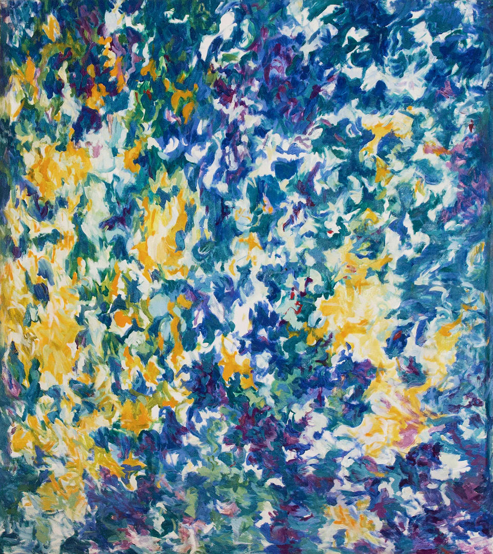 Wheeler’s approach to painting was introspective–her rich palette led her to explore color theory and composition with a distinctive style. Color, light and form are balanced in her paintings, with autographic gestures and pictorial marks rendering beautiful lyrical abstractions. Earlier paintings from the 1960s and 70s are more tightly rendered than later executions from the 1980s and 90s, but unified by her emphasis on process and mark-making. Brushstrokes reveal themselves throughout, whether as smaller woven webs of pigment or more painterly accident. The sense of the material in her approach to painting is clearly evident. Wheeler’s myriad strokes of color offer an impressionistic language, with visual references to a floral lexicon. Acting much like characters of color arranged in coded forms, the dynamic optical fields offer no focal point or compositional center. The paintings are galvanized with unexpected color relationships, some with atmospheric backgrounds, others with bold hues and brushstrokes. While a fluid spontaneity appears to make up most of the gestures, there is a system to Wheeler’s mark-making that renders an evocative cohesiveness to the overall colorful composition.