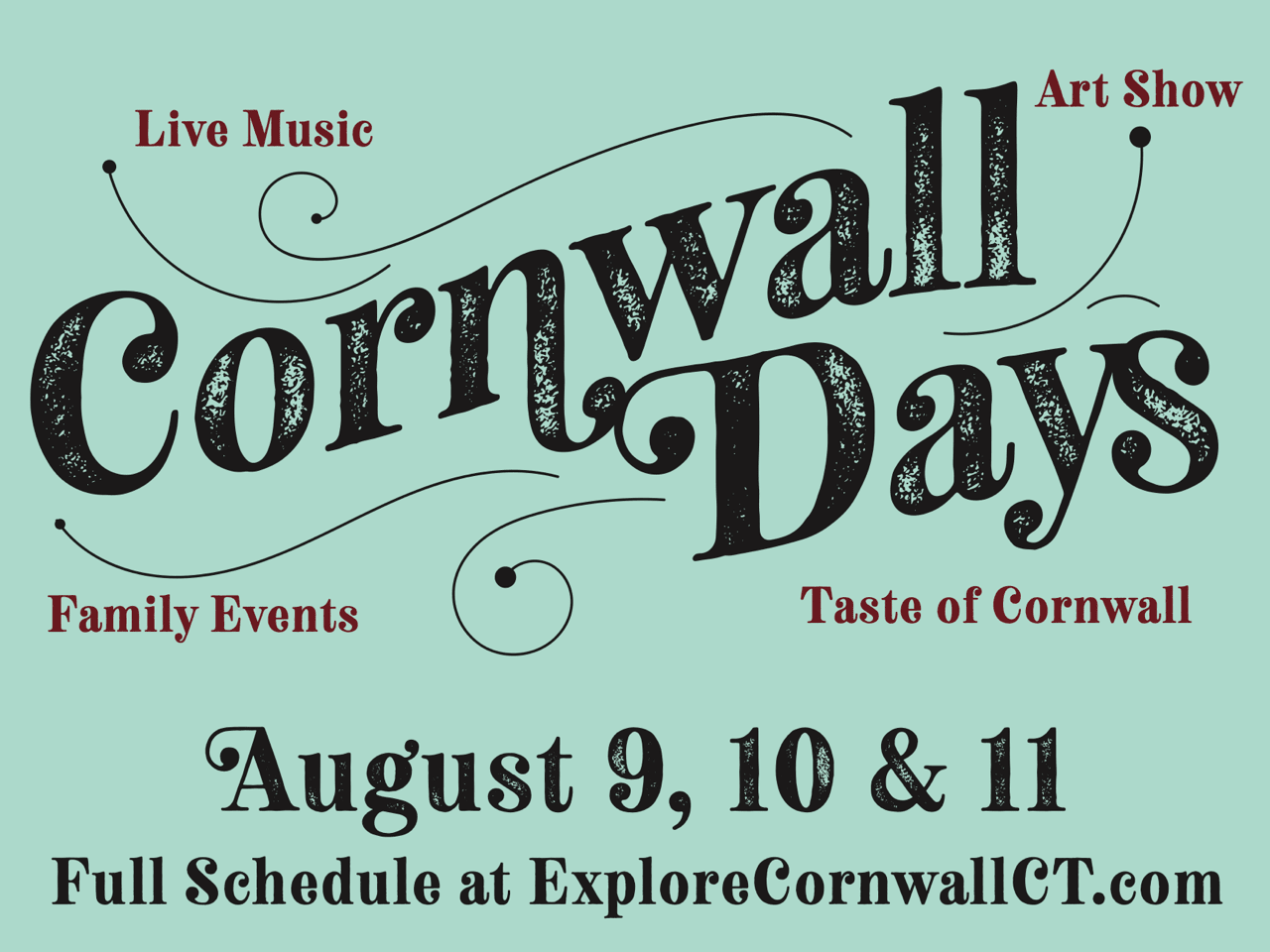 We are expanding our weekend called "Cornwall Days" to support large events that are already part of our town's traditions - the Rose Algrant Art Show and Parks & Rec Taste of Cornwall event - to bring even more activities and create many reasons to come to Cornwall on August 9-11th. Music will be a big part of the weekend, and we're currently working on individual promotional content for each singer-songwriter and band that will be playing throughout the weekend.