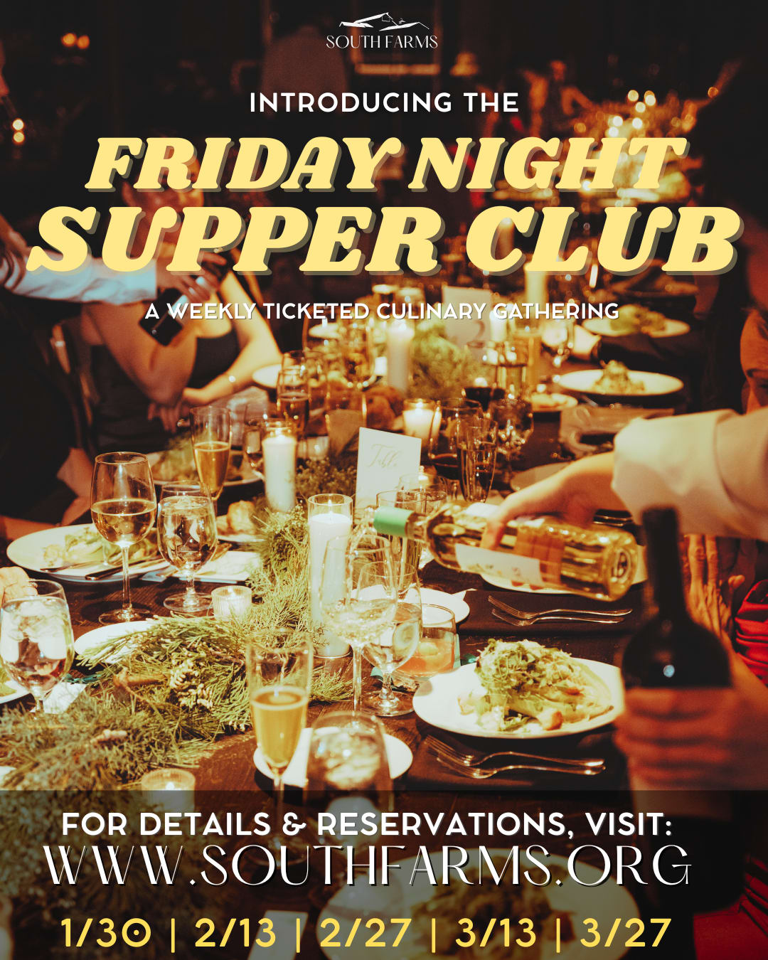 Join us for an intimate Winter Supper Club experience at South Farms, where our acclaimed catering kitchen takes center stage. This seasonal dinner series invites guests to enjoy a thoughtfully curated, chef-driven tasting menu in a warm yet refined communal setting.