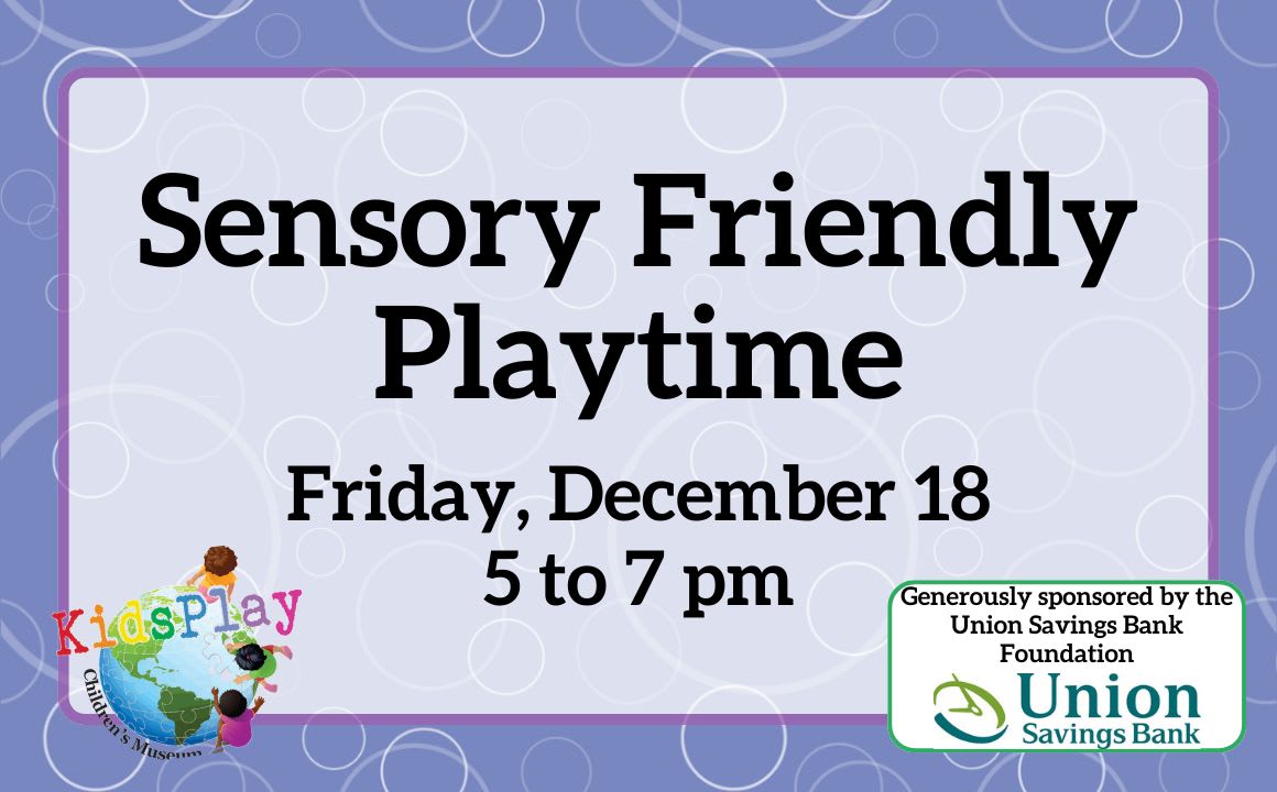 Sensory Friendly Playtime at KidsPlay Children’s Museum is a judgement-free environment for play and learning, perfect for families living with sensory processing challenges. Attendance is limited, lights are lowered, and sounds are reduced. Thanks to sponsorship from the Union Savings Bank Foundation, admission during Sensory Friendly Playtime is reduced to only $5 per person.